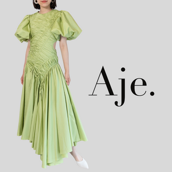 Ajeのボリューム袖や立体シルエットが美しいドレスをレンタル。手描きプリントや天然素材を活かした、モードかつ個性的なデザイン。オーストラリア発の注目ブランド。
