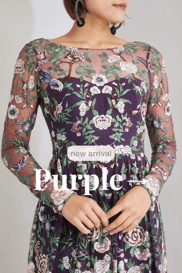 パープルドレスは、上品でエレガント、少し個性的な印象を与えるカラーです。ラベンダーは柔らかく優しい雰囲気、バイオレットや深紫は高級感と大人の魅力を演出。結婚式参列や二次会、ディナー、クラシックなパーティーに特におすすめです。