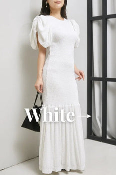 ホワイトドレスは清楚で洗練された印象を与えるカラー。二次会やパーティー、花嫁向けドレスとして人気です。※結婚式に参列される場合は、デザインや素材によって着用マナーにご注意ください。