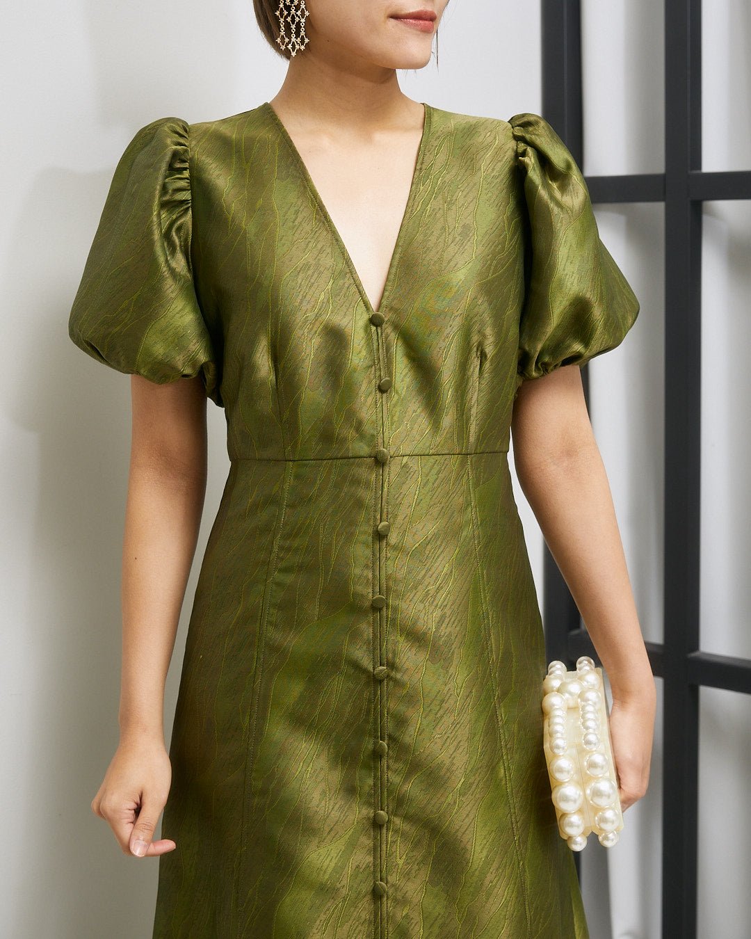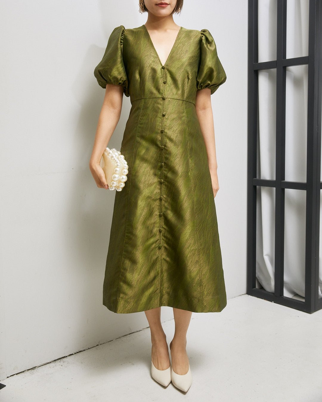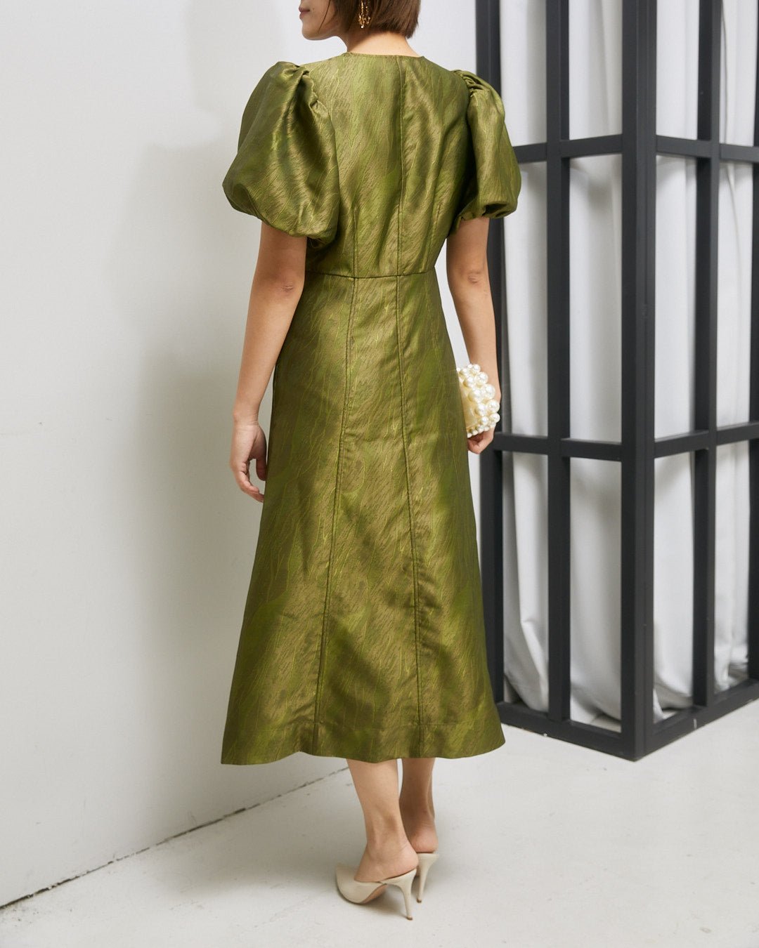 結婚式に映える 光沢ジャカードドレス(L相当)
