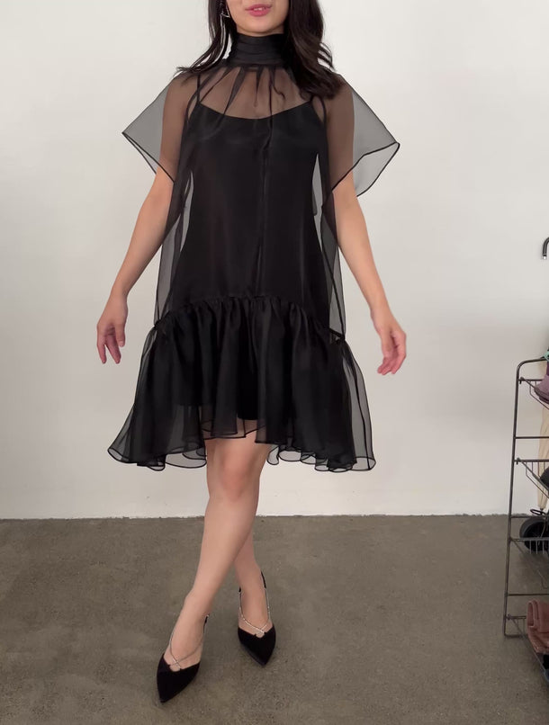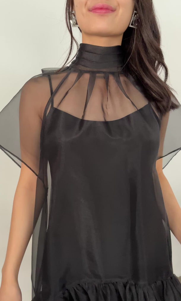 - 首後ろのボタン(またはホック・金具)を外して、頭からかぶります。首後ろのリボンはご自身で結ぶ仕様です。