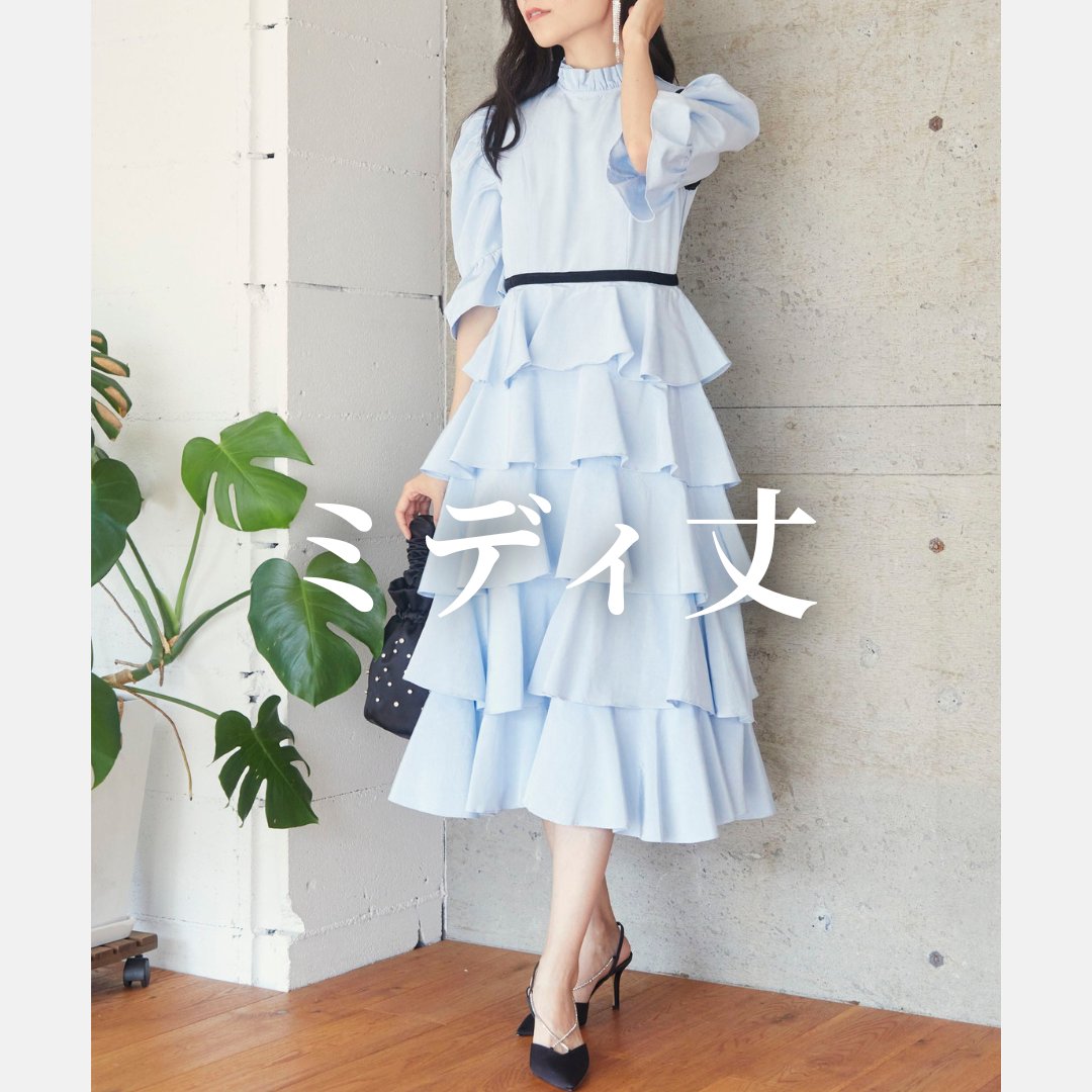落ち着きと可愛さを両立するひざ下丈ドレス。結婚式や会食、食事会におすすめ。ハイブランド多数、30〜40代にも人気。
