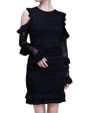 オープンショルダー フリル付き クロッシェ ニットドレス(XS~S相当)