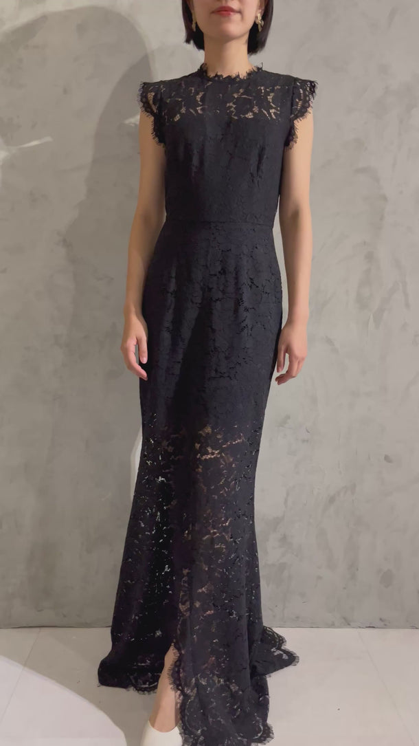 大人の華やかブラックレースドレス(S〜M相当)