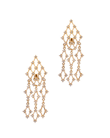 レースモチーフ クリスタル装飾ゴールドイヤリング