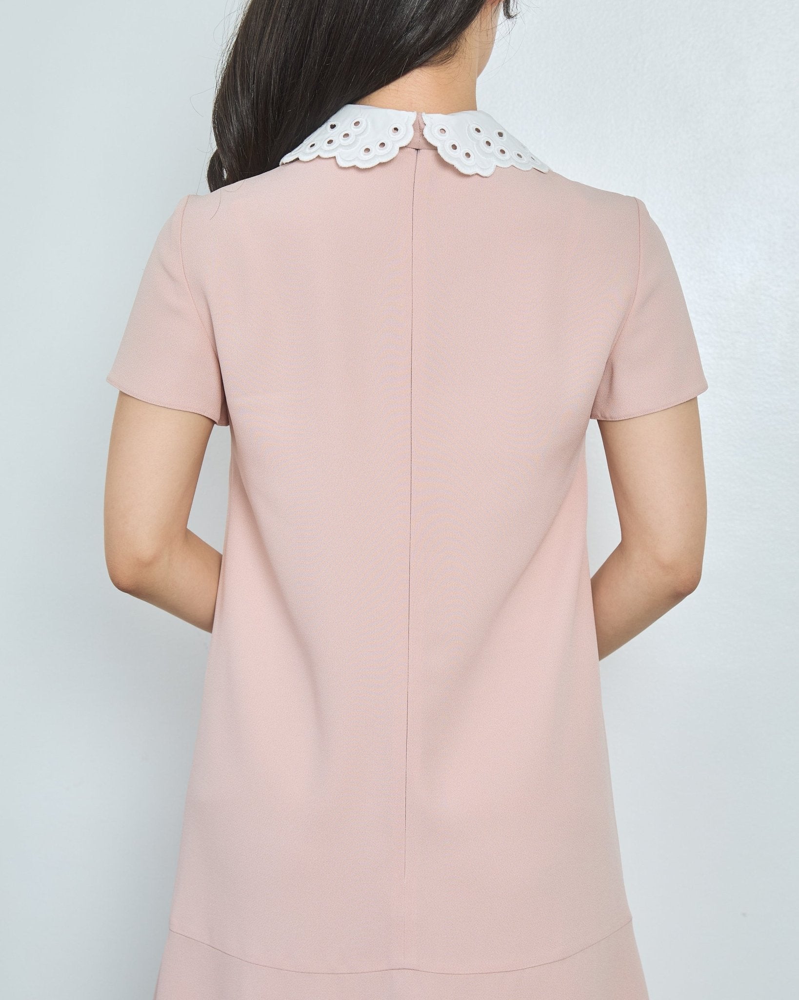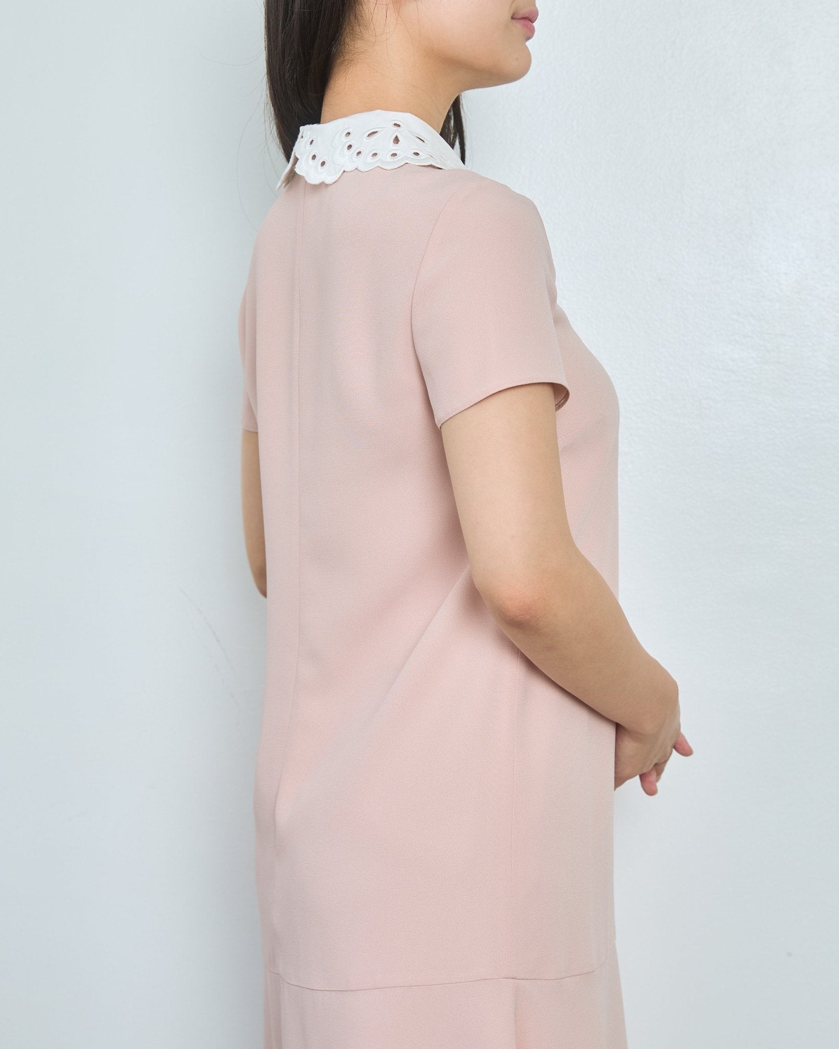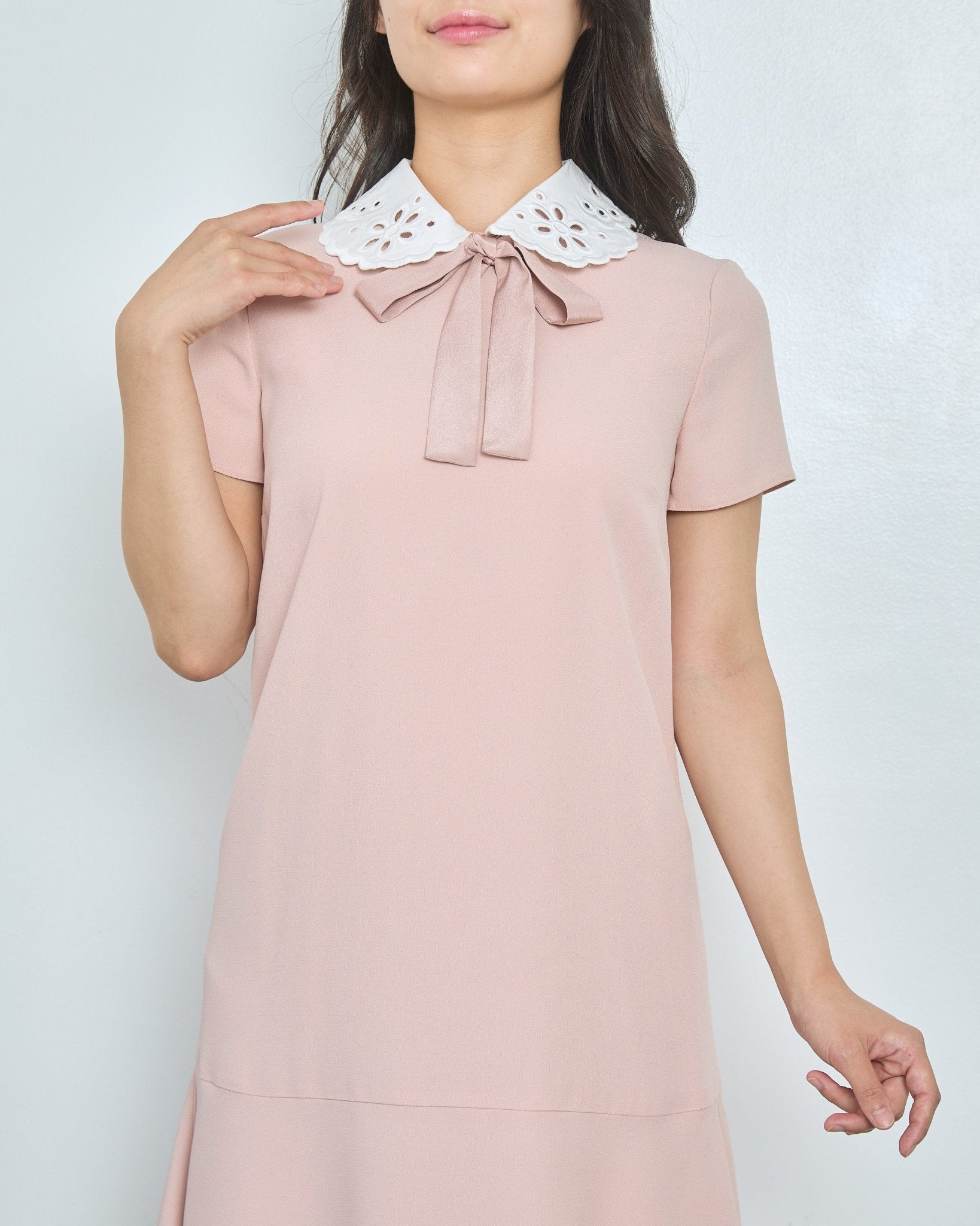 - バックファスナーで開閉します。首元のリボンはご自身で結ぶ仕様です