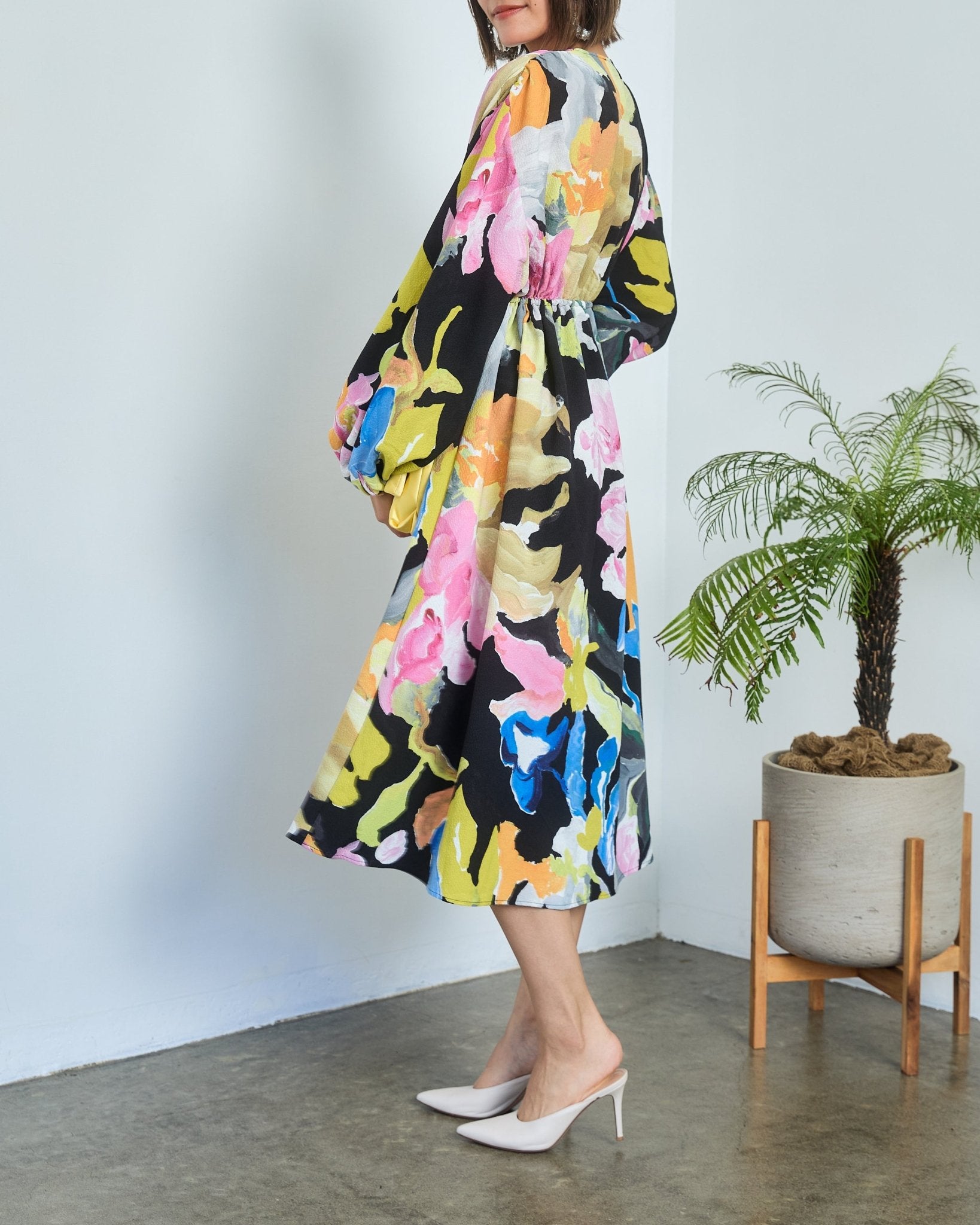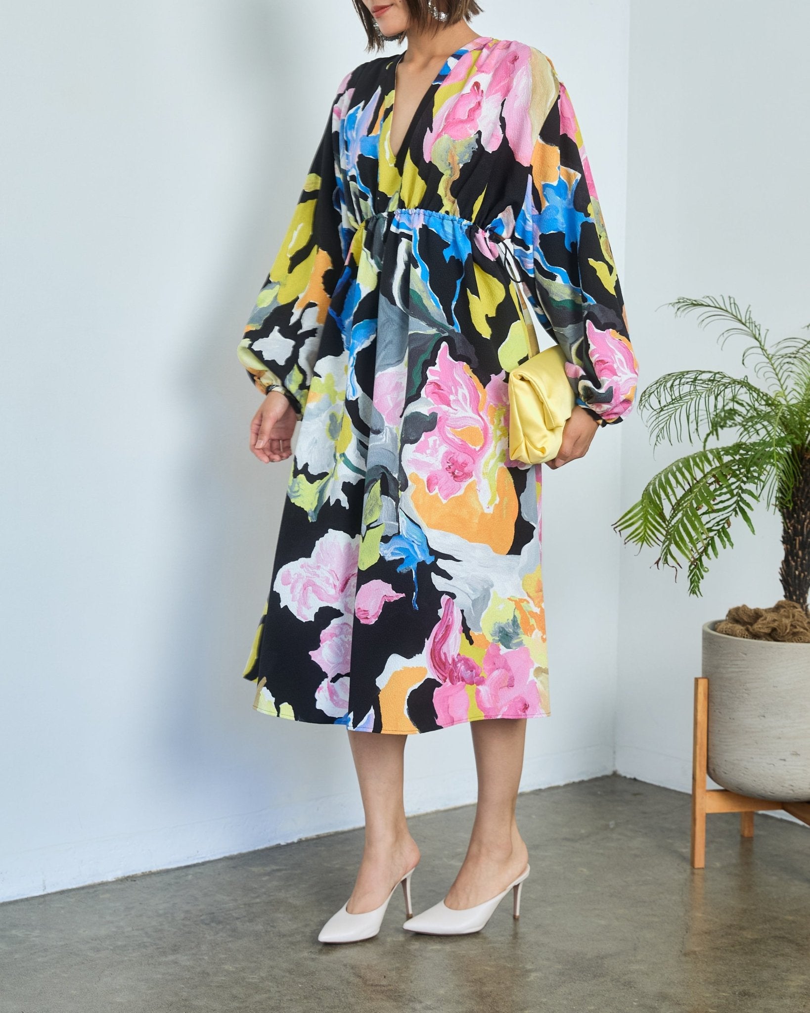 フローラルペイント クレープドレス(S~XL相当)