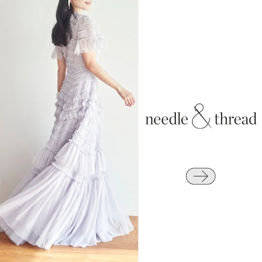 Needle & Thread(ニードル アンド スレッド)のレンタルドレスは、繊細な刺繍とチュール、スパンコールが煌めくビンテージ風デザインが魅力。結婚式や前撮り、パーティーに映える華やかなドレスをご用意。サステナブル素材も使用。