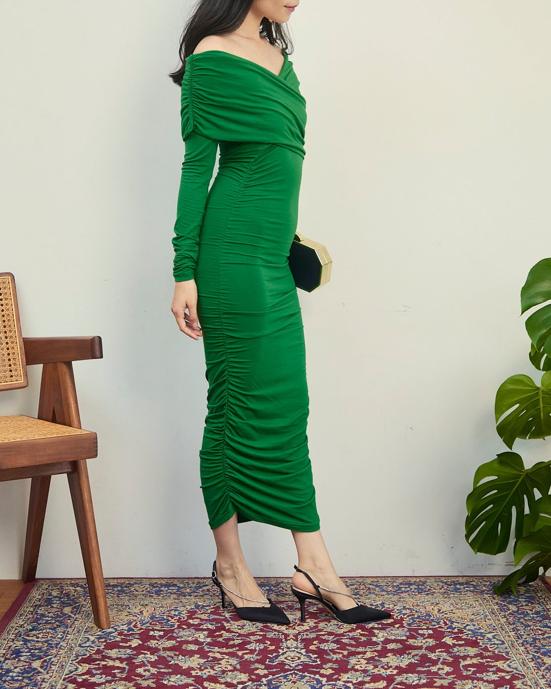 ジャージールーシュ入りクロスオーバー2wayタイトドレス(XS~S相当)