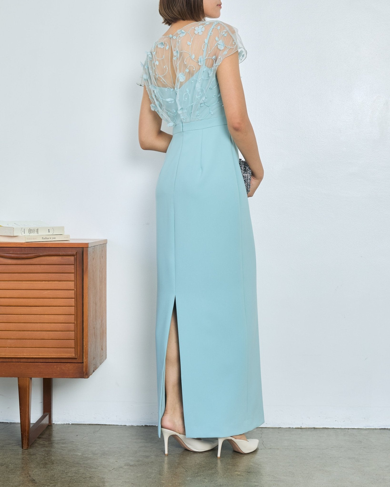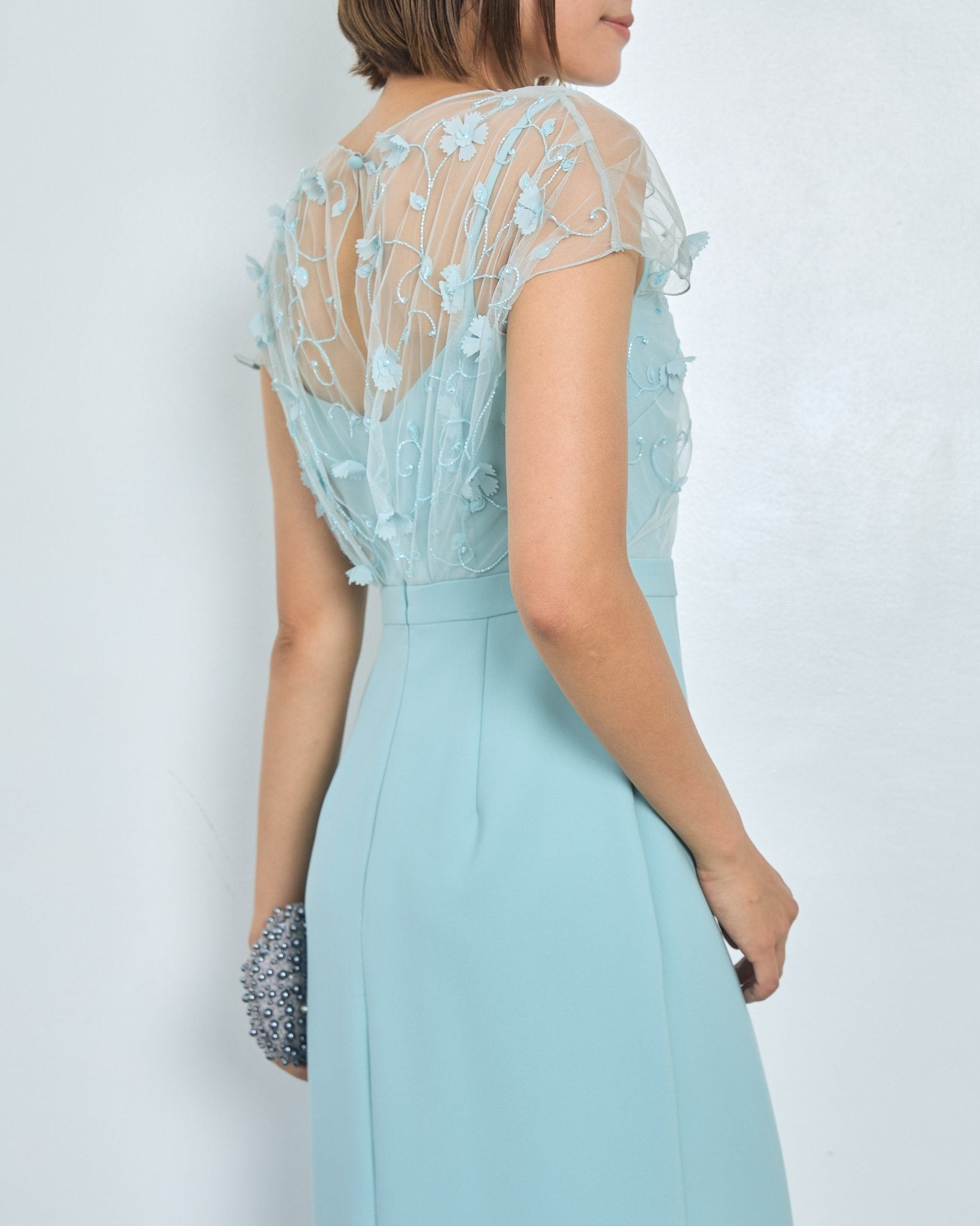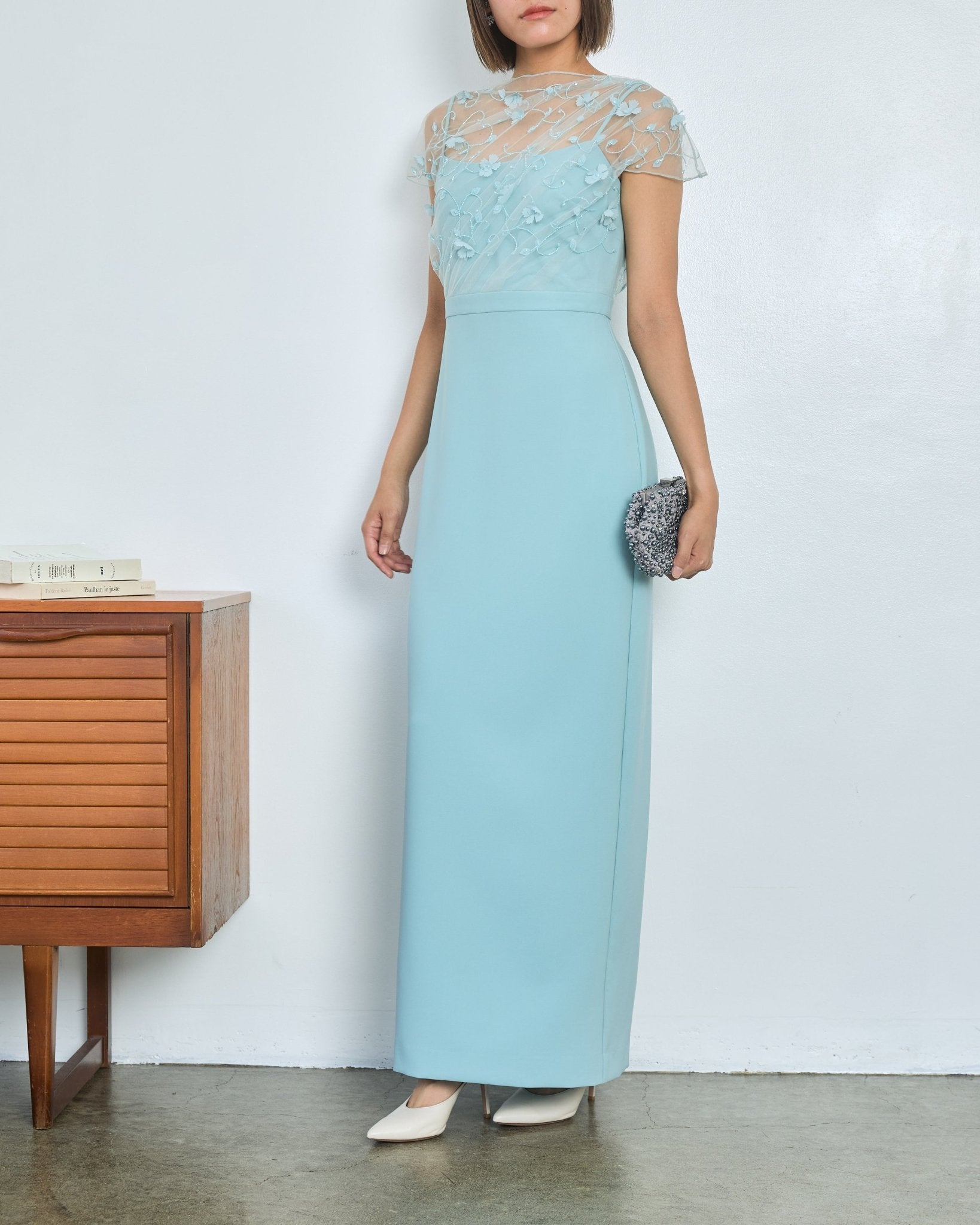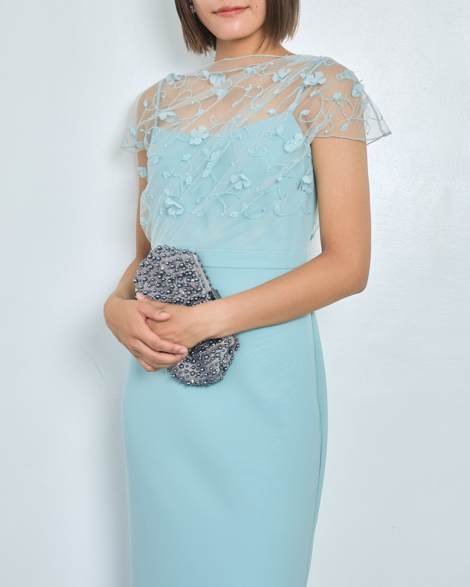 3Dアップリケ&ビーズ刺繍 チュール&クレープドレス(M~L相当)
