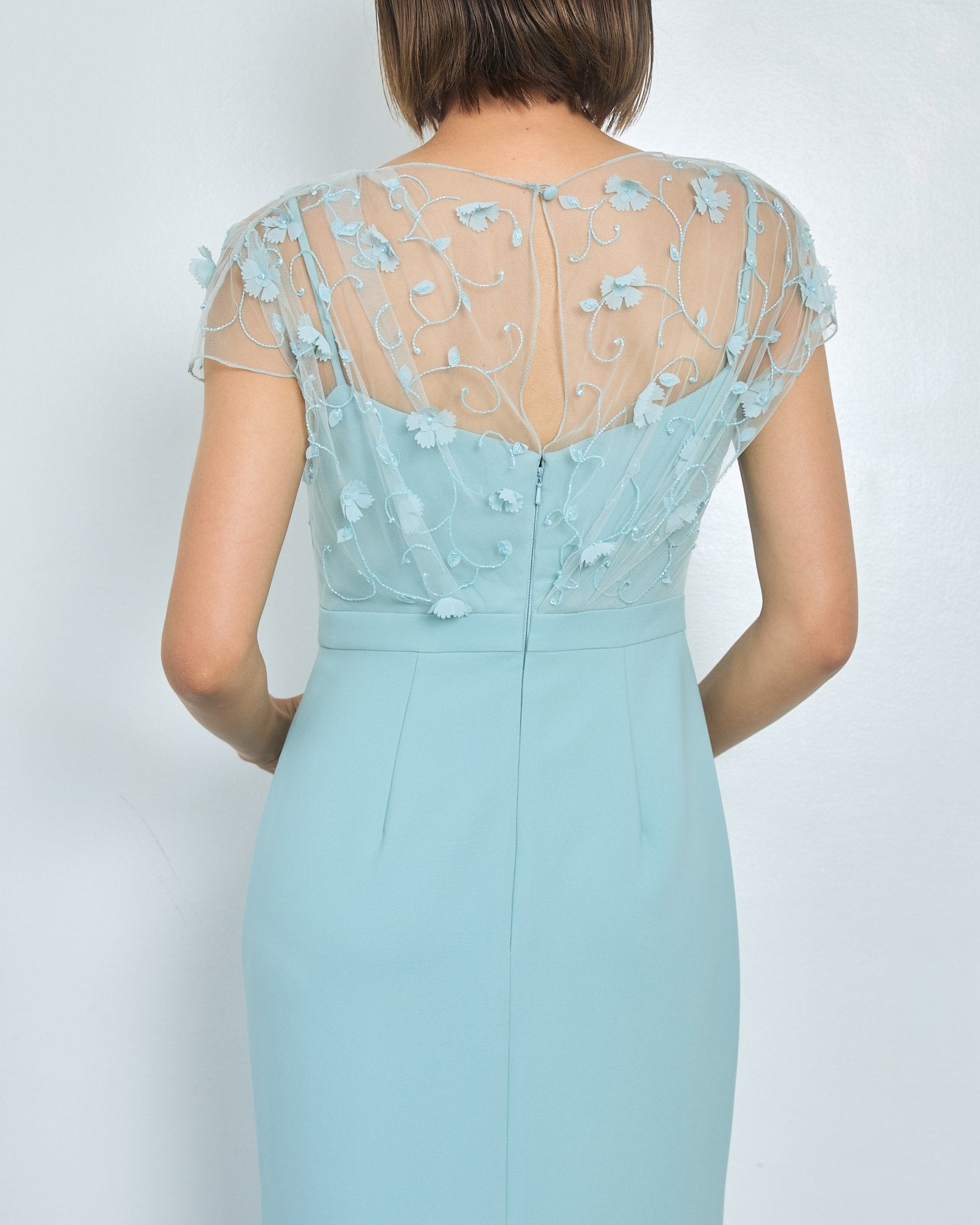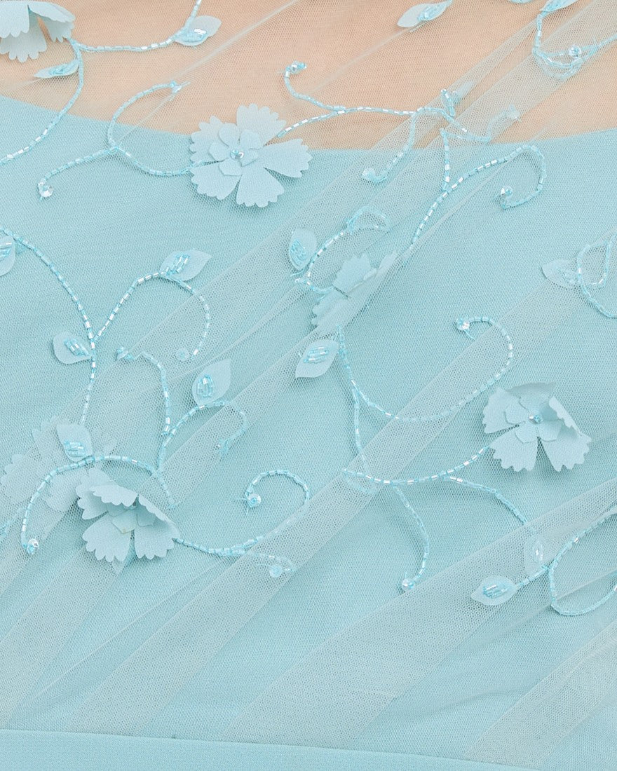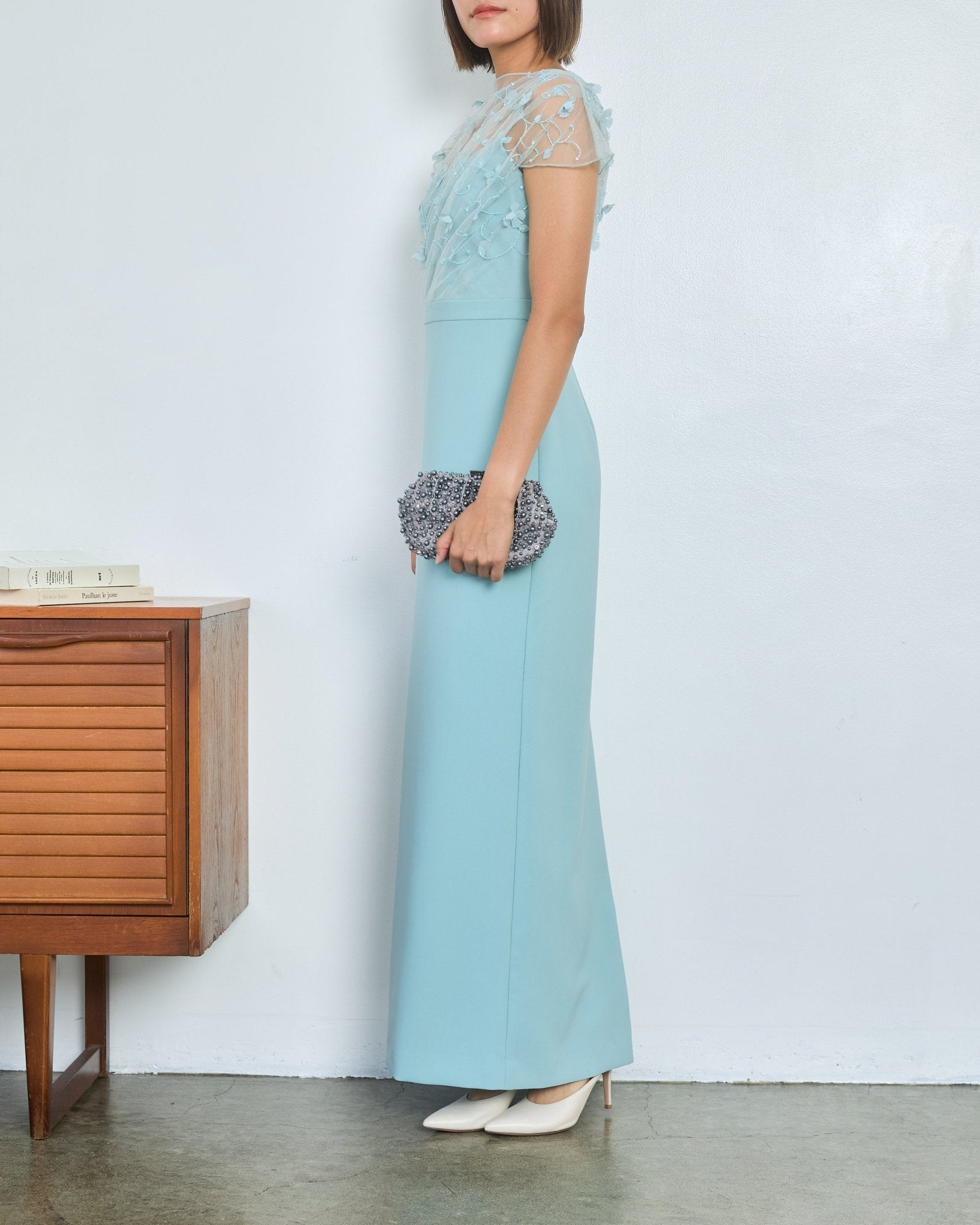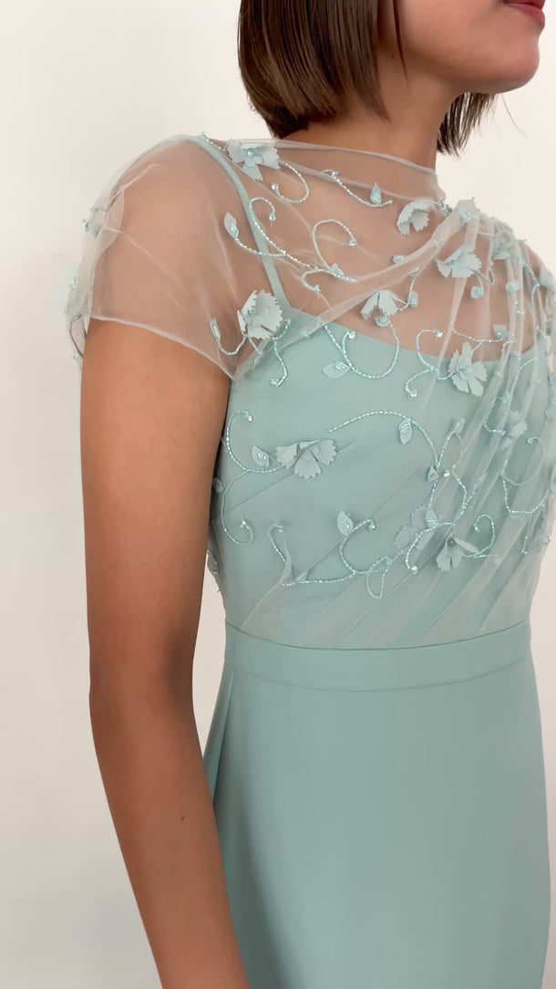 3Dアップリケ&ビーズ刺繍 チュール&クレープドレス(M~L相当)