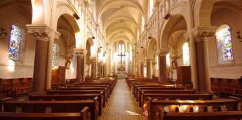 式場や教会は、天井が高くバージンロードが長いなど、開放的で厳粛な雰囲気が特徴です。