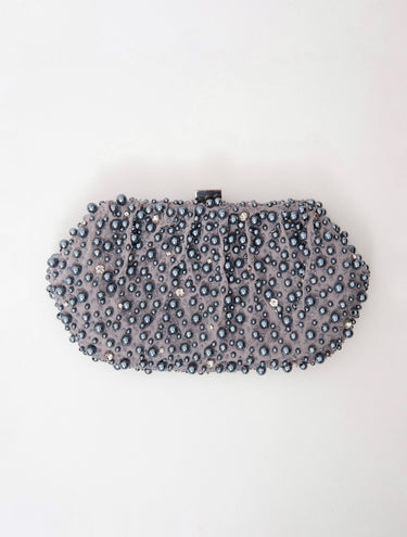 ブラックチェーン フェイクパール&クリスタル&ビーズクラッチバッグ