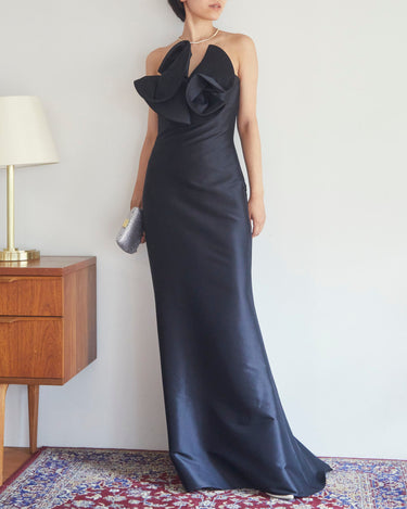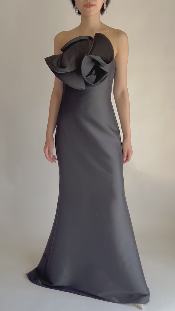 ツイル サテン ラッフル装飾ドレス(M~小さめL相当)