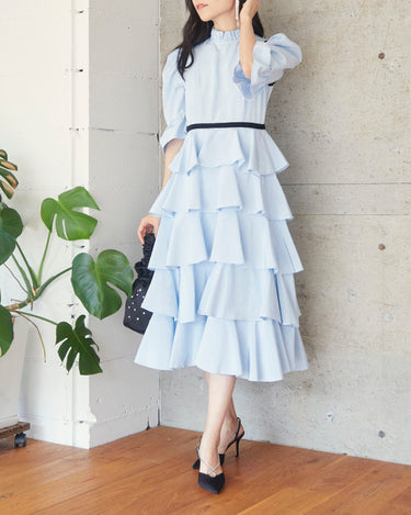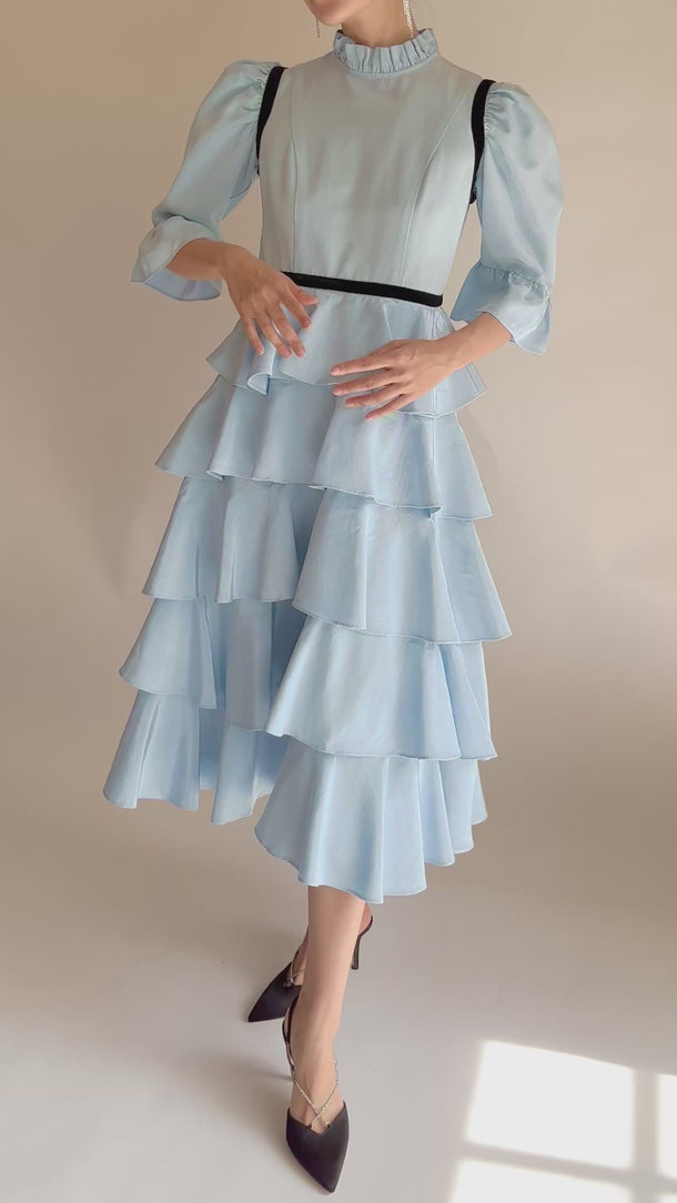 タフタ ベルベットリボン ティアードドレス(大きめS~M相当)