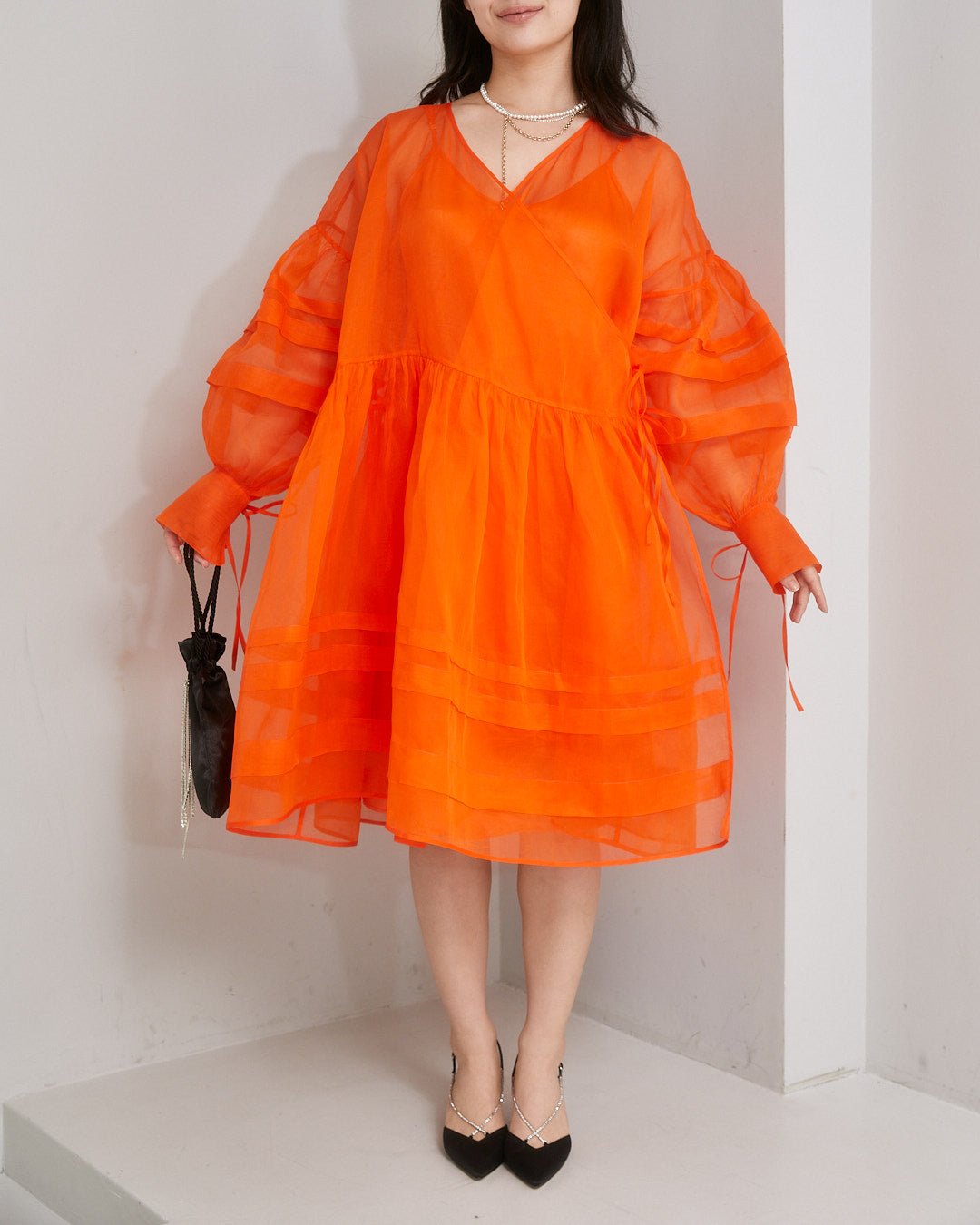 コットンオーガンジーオーバーサイズラップドレス(S~L相当)