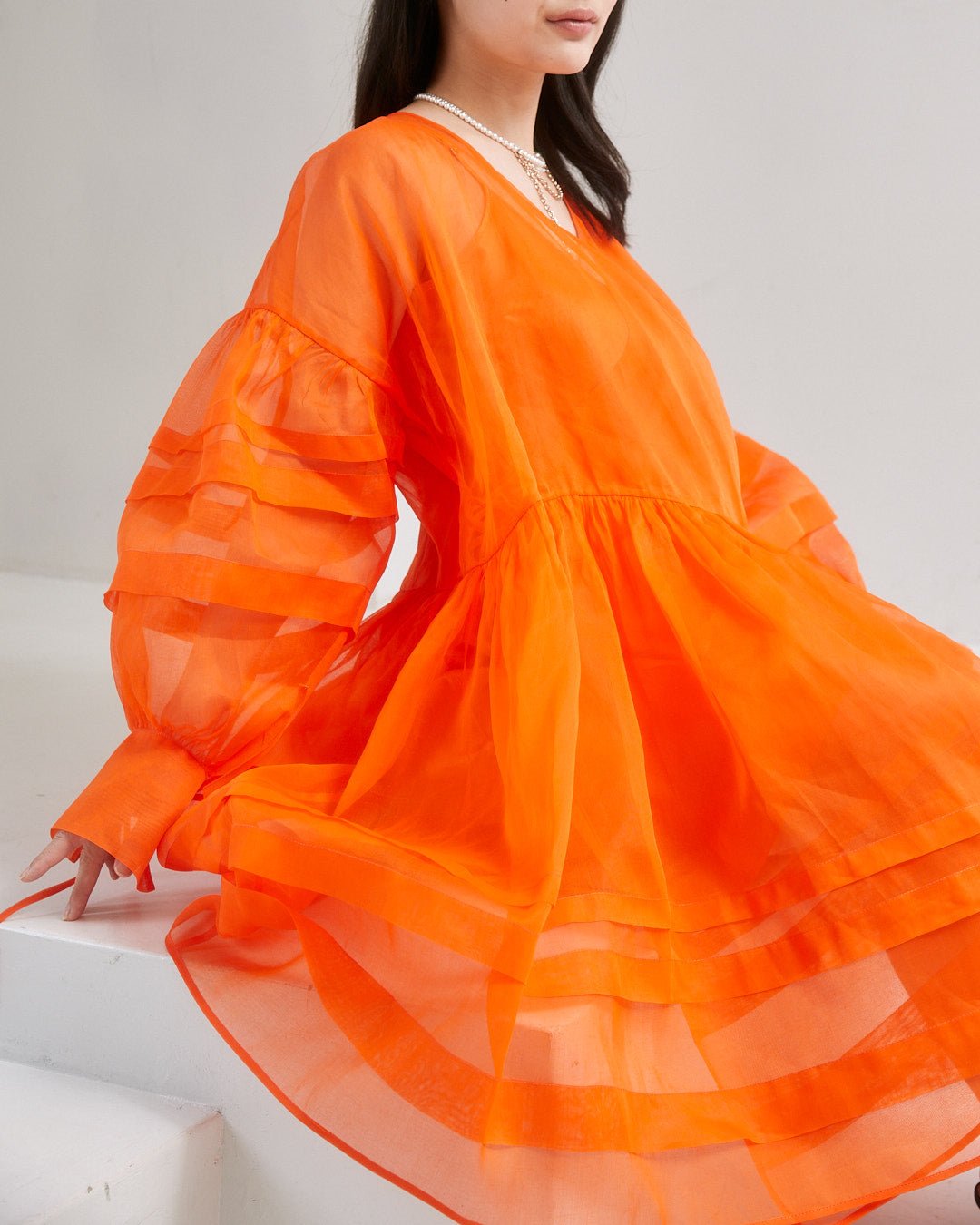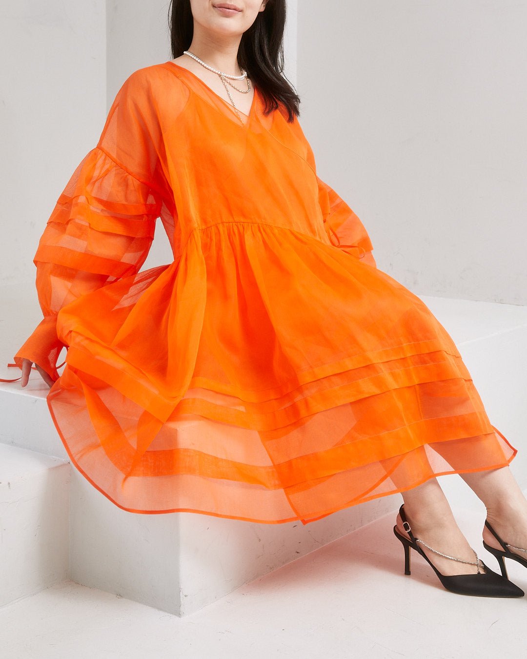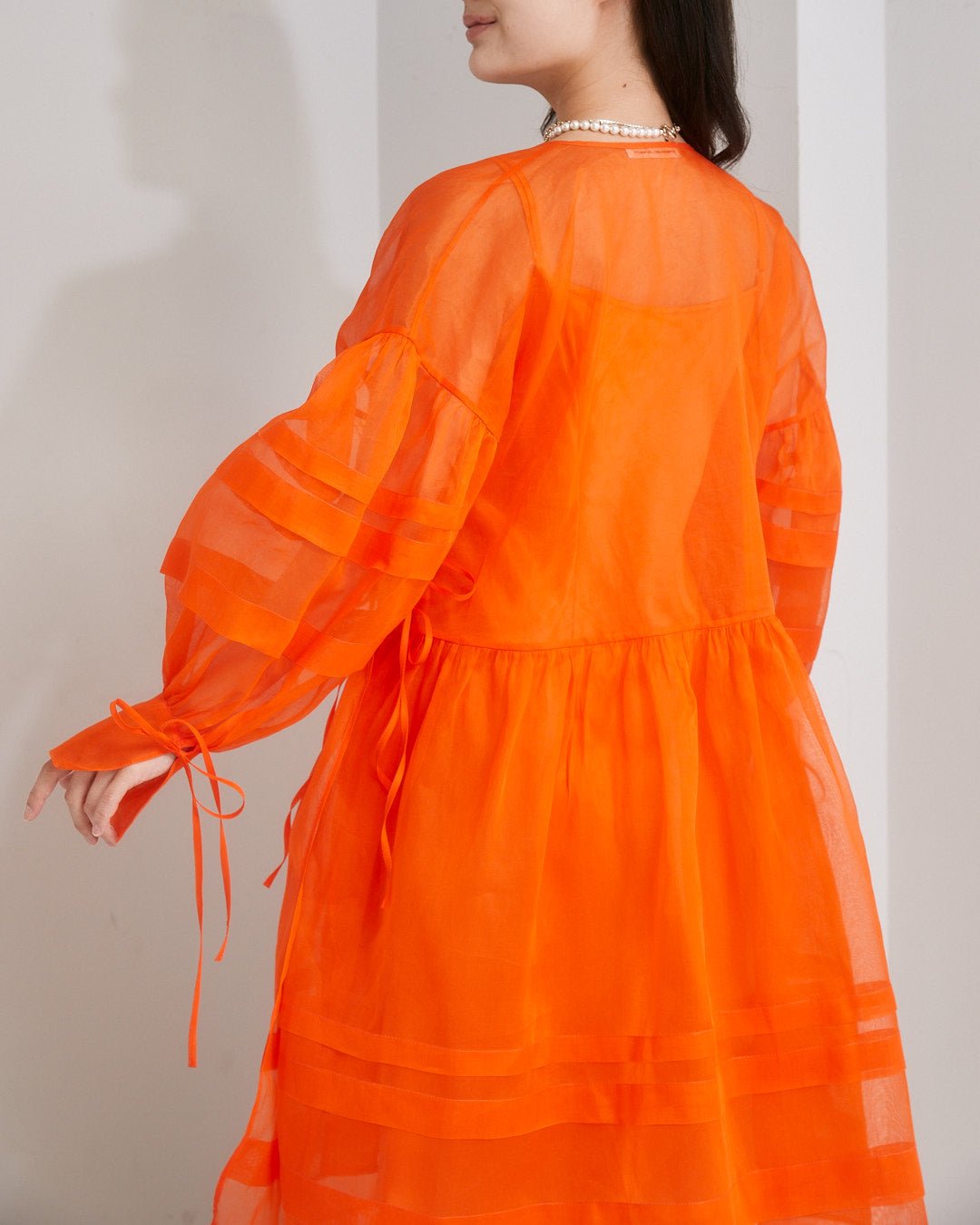 - 透け感あり(デコルテ・袖のみ)