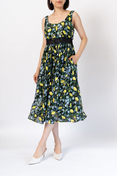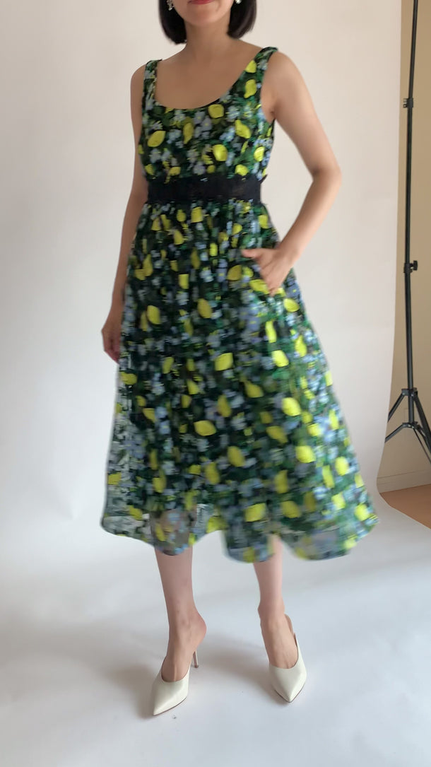 レモン刺繍 レース装飾入り チュールドレス(M~小さめL相当)