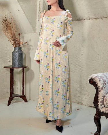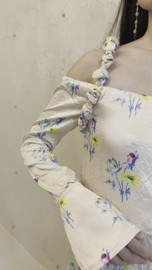 シワ加工フラワーサテン オフショルダードレス(S相当)