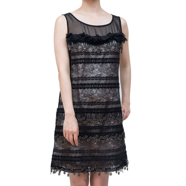 レースパネル メタリック刺繍 フリル装飾ドレス(S~M相当)