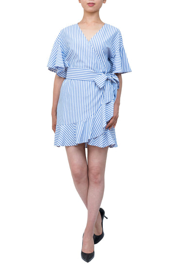 ストライプ ティアード ラップシャツドレス(M~XL相当)