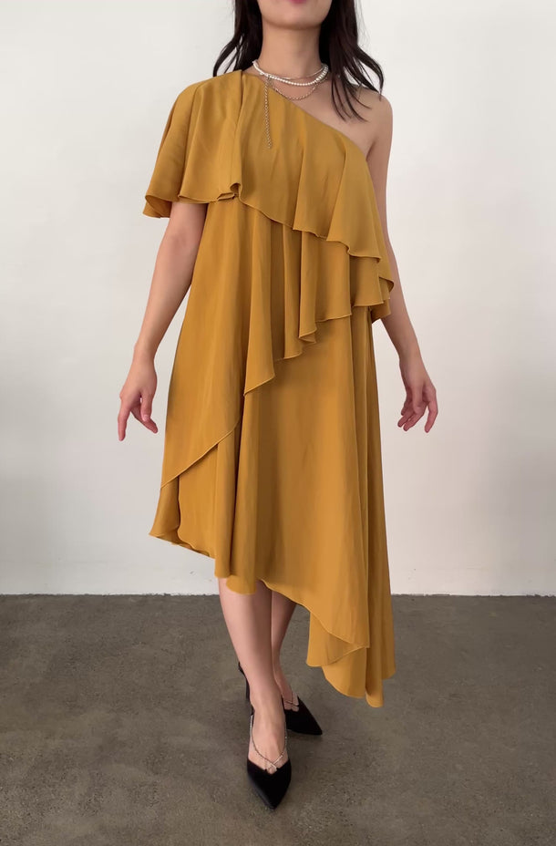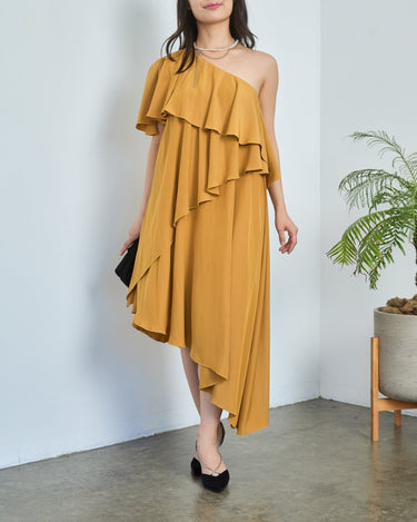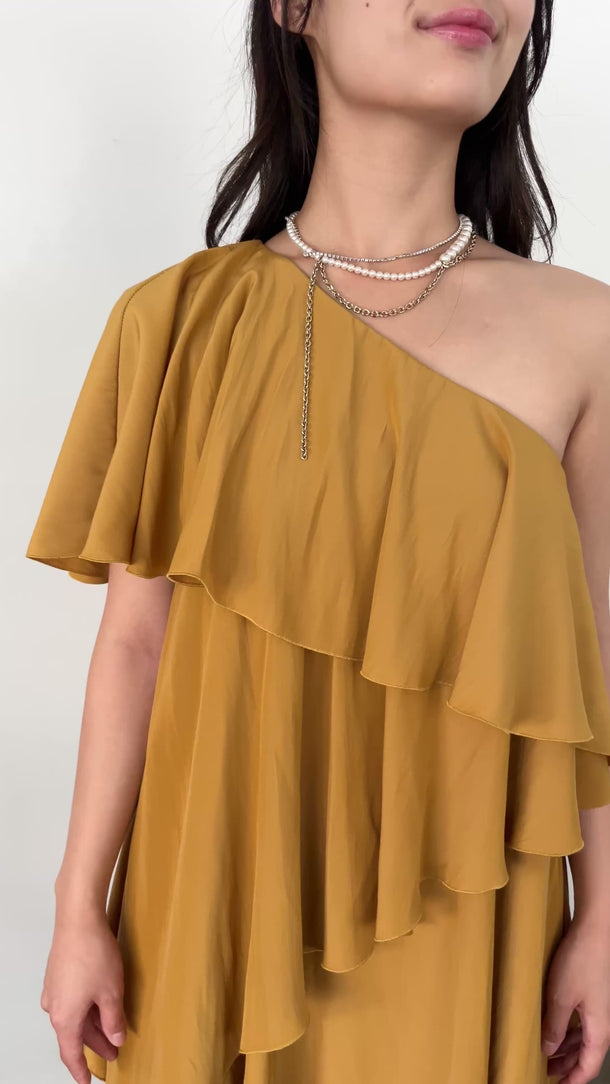 クラッシュドサテンワンショルダーティアードドレス(S相当)