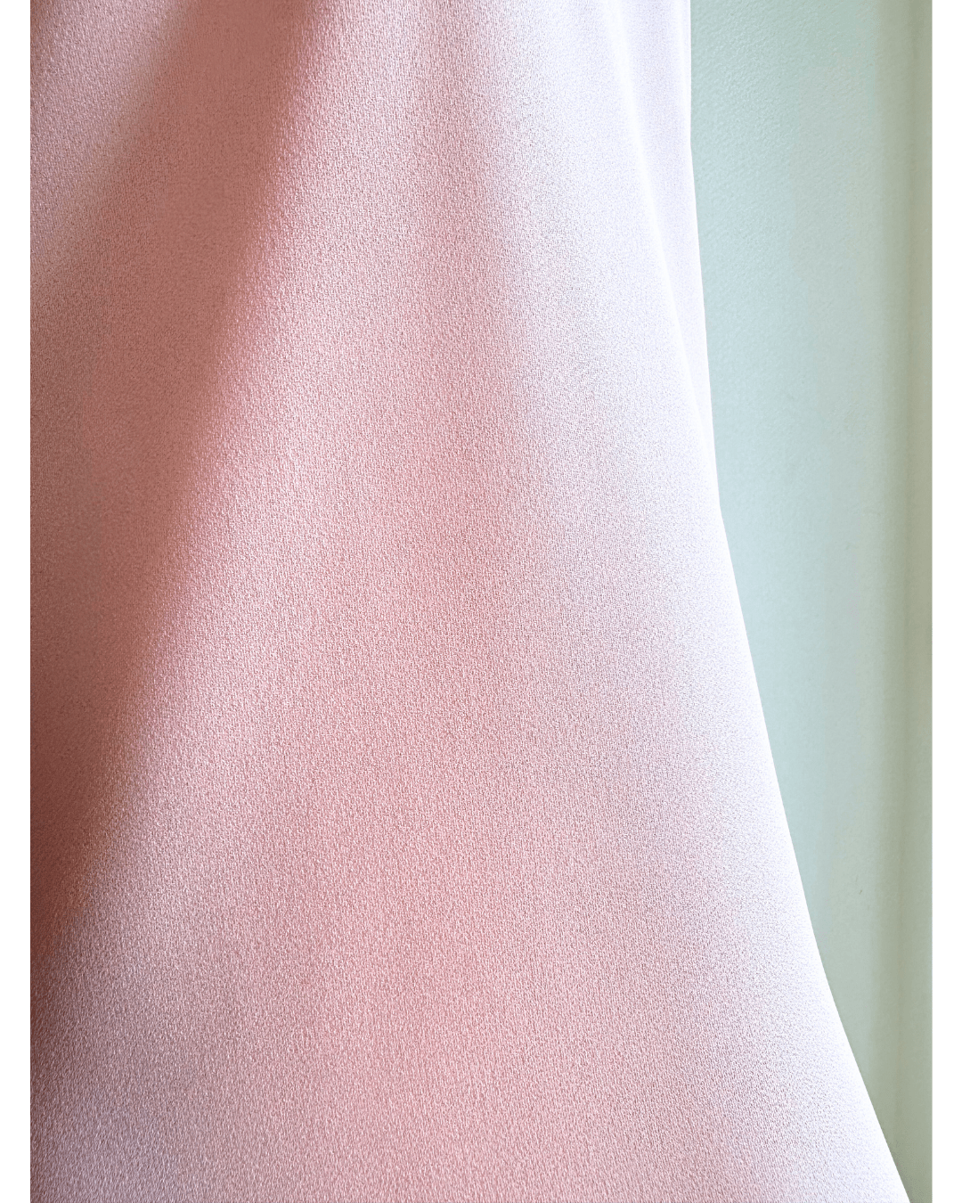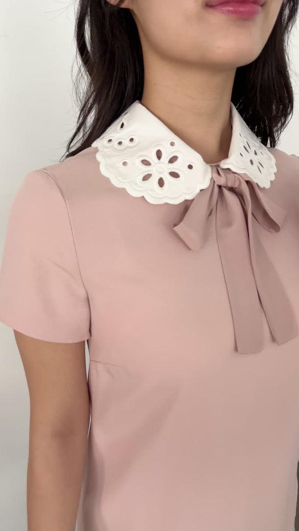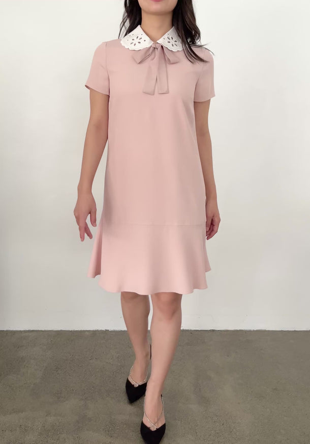 - バックファスナーで開閉します。首元のリボンはご自身で結ぶ仕様です