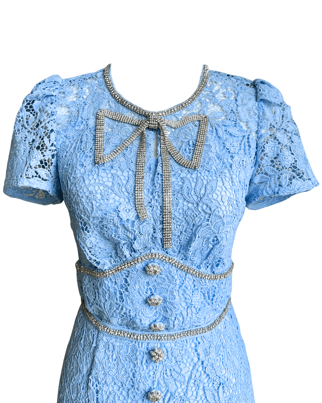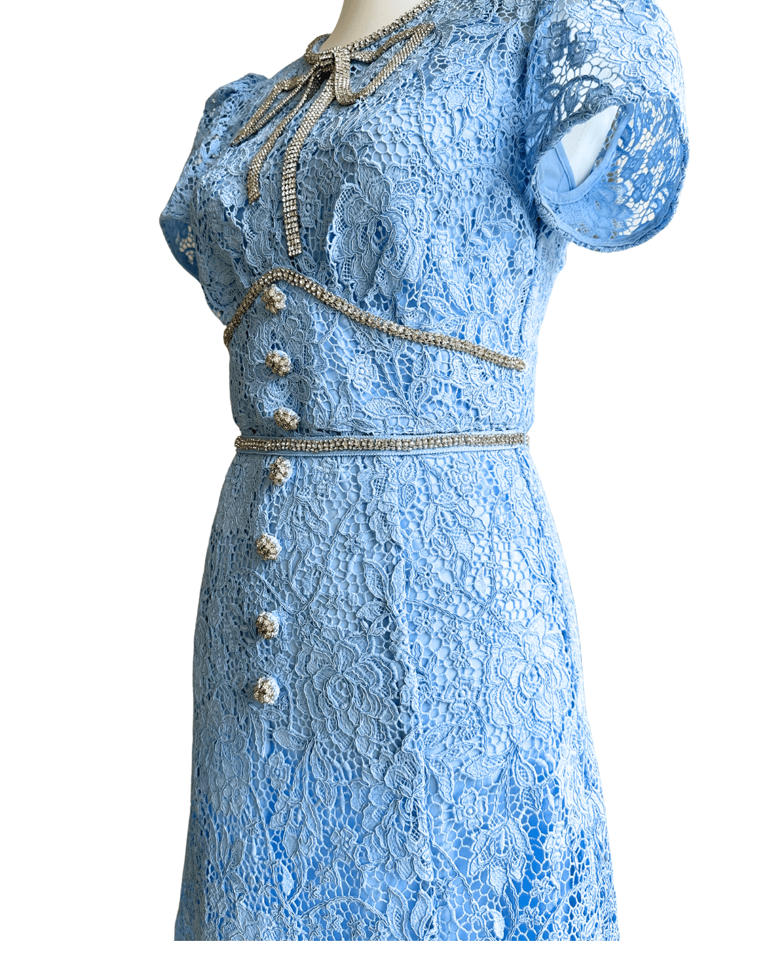 ・裏地:あり(ひざ丈)、袖・デコルテ・背中上部は裏地なし