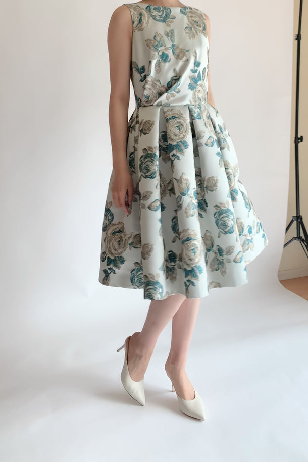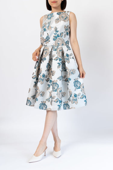 ローズ刺繍 ジャカード フィット&フレアドレス(M~L相当)